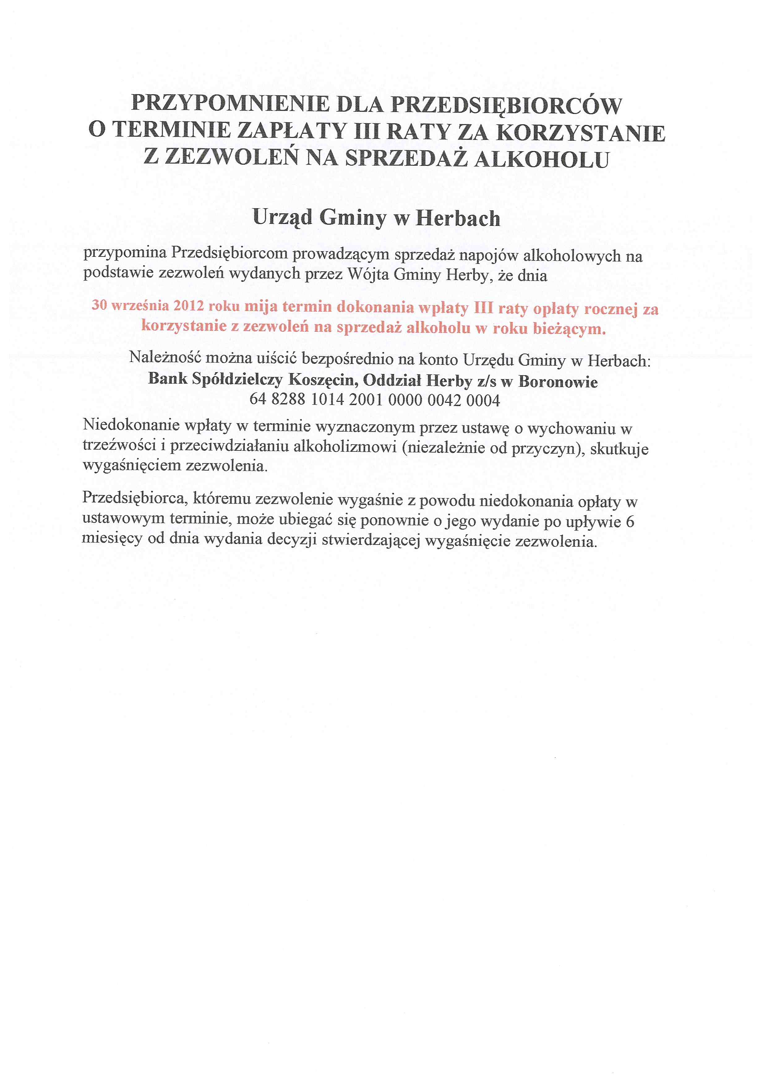Informuje się, że z dniem 19.09.2019 roku został uruchomiony nowy numer rachunku bankowego , na który należy uiszczać opłaty za gospodarowanie odpadami komunalnymi Nr konta: 93 8288 1014 2001 0100 0042 0209 ::Informuje się, że z dniem 19.09.2019 roku został uruchomiony nowy numer rachunku bankowego , na który należy uiszczać opłaty za gospodarowanie odpadami komunalnymi Nr konta: 93 8288 1014 2001 0100 0042 0209 ::